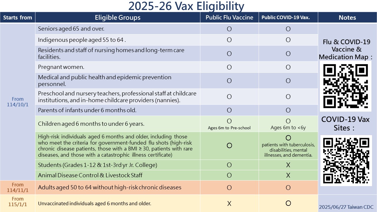 I. Expansion Details As winter is the peak season for respiratory infectious diseases, and the frequent travel and social gatherings during the Lunar New Year holiday increase the risk of COVID-19 transmission, the Taiwan Centers for Disease Control (CDC) has announced an expansion of eligibility.